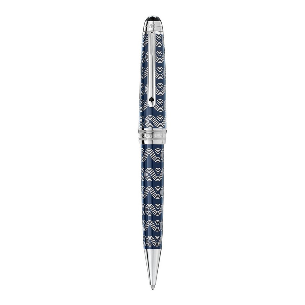 The Meisterstück Around the World in 80 Days collection is inspired by the famous adventure novel by Jules Verne. The Solitaire Midsize Ballpoint Pen in blue translucent lacquer with gradient finish, draws on the first part of the journey. The main character travels, mainly via steamboat, from London to Bombay, crossing the Mediterranean ocean and through the Suez canal. The cap and the barrel feature a milled pattern of the key elements of the novel: ocean waves, card suits and a cartouche with a lasered steam boat. The cap top is embossed with the length of the journey, 18 days from London to Bombay and 80 days in total.