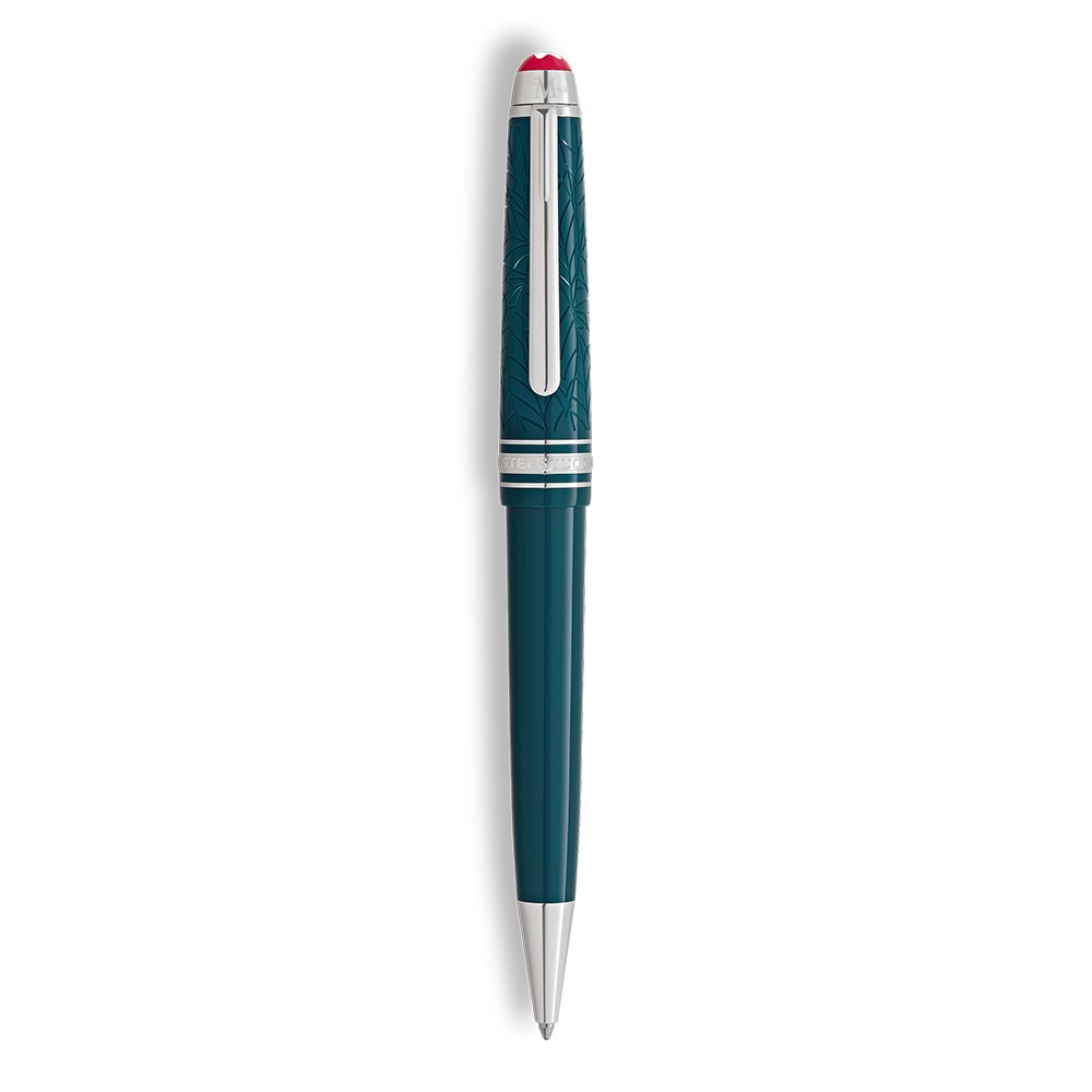 | Cap | Teal colored precious resin cap with leaf pattern, with the Montblanc emblem on the cap top embedded in precious coral-colored resin. |