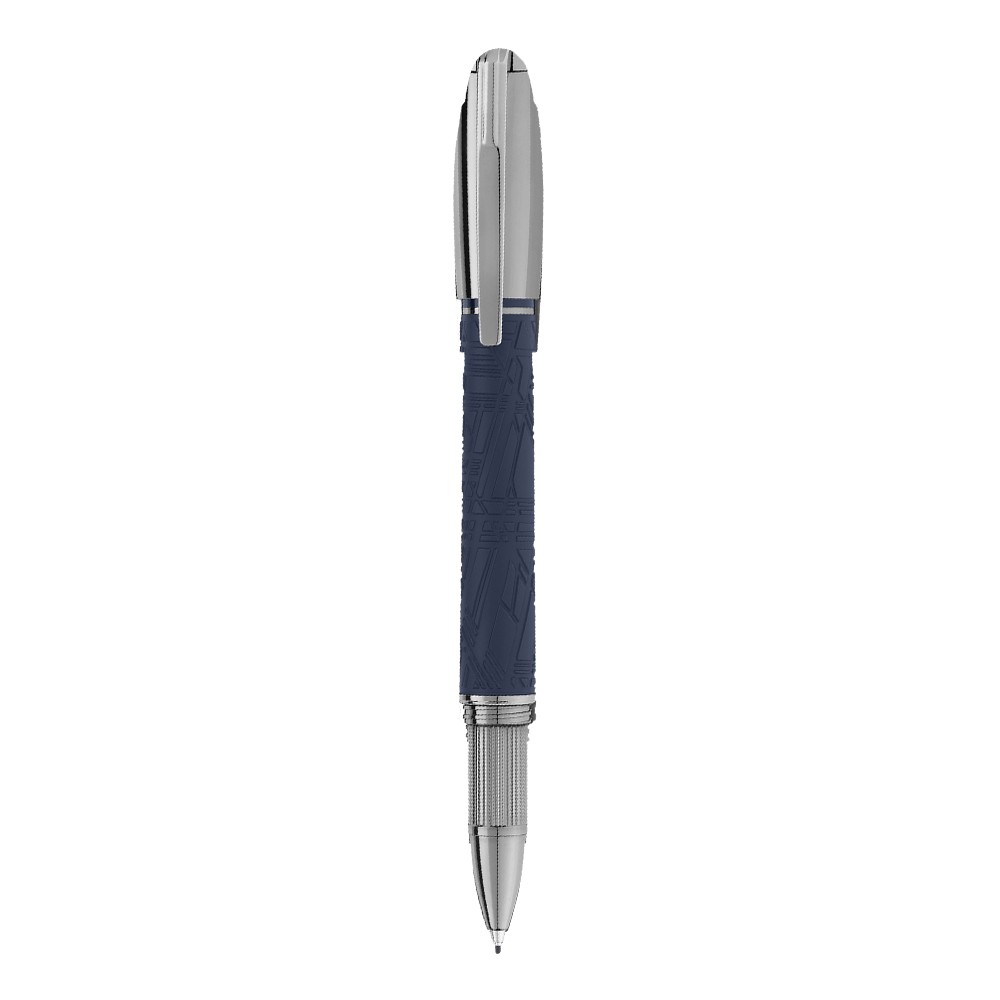 Starwalker SpaceBlue looks beyond planet earth and turns towards the stars and the galaxy. Utterly masculine and futuristic, this new StarWalker collection brings a new look for resin barrel, with a design that recalls the intricate structures of the Widmanstätten Pattern, one of nature's most hypnotic creations. The metal cap and fittings are coated in dark ruthenium, accompanied by a deep space blue tone for the matte precious resin, recalling the hues of a starry sky. Also the subdome on the cap top, over which the Montblanc emblem floats, comes in a deep space blue colour. The fountain pen is hand-crafted with a rhutenium-coated Au585 gold nib.